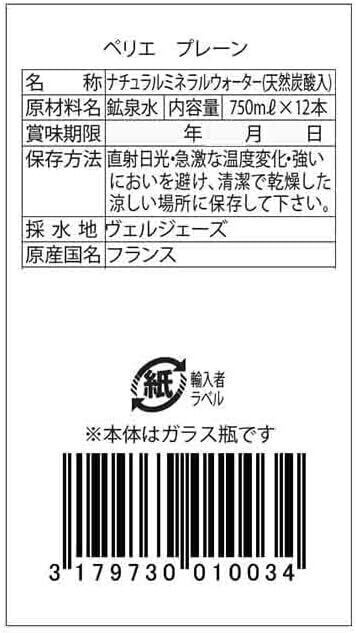 ペリエ プレーン 炭酸水 瓶 750ml ×12本